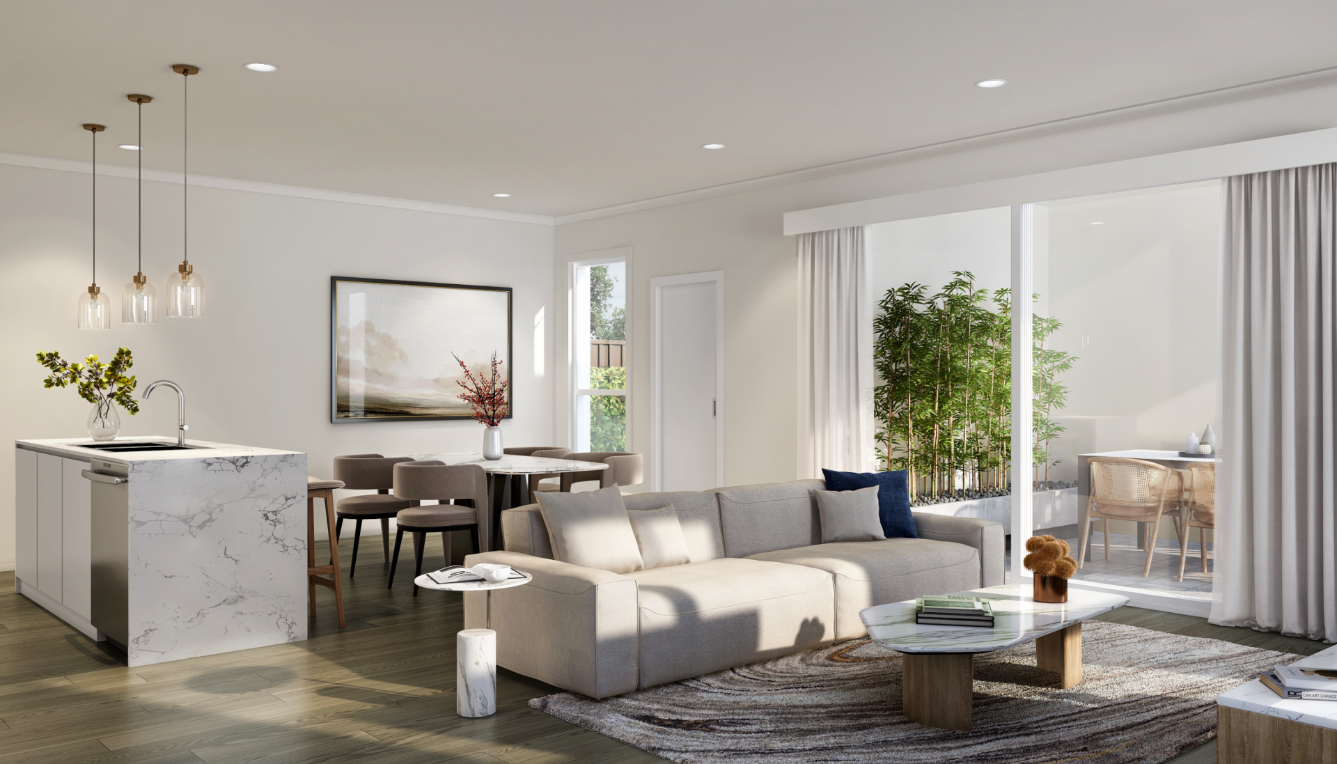 Beautiful stylish design with high end finishes and fixtures. Sleek gourmet kitchen with modern cooktop and Oven and plenty of storage. Spacious open plan living and dining zone effortlessly connects to outdoor entertaining. Sleek gourmet kitchen with modern cooktop and Oven.